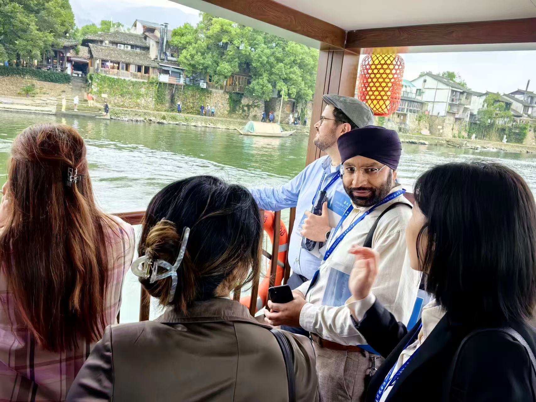 使领馆官员们对古人利用自然、巧夺天工的水利智慧赞叹不已,纷纷举起手机,记录下“舟行碧波上,人在画中游”的诗意瞬间。